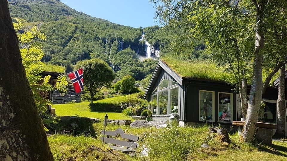 Det er ei rekke sitteplassar ute i det fri også, blant anna to “vikahytter”