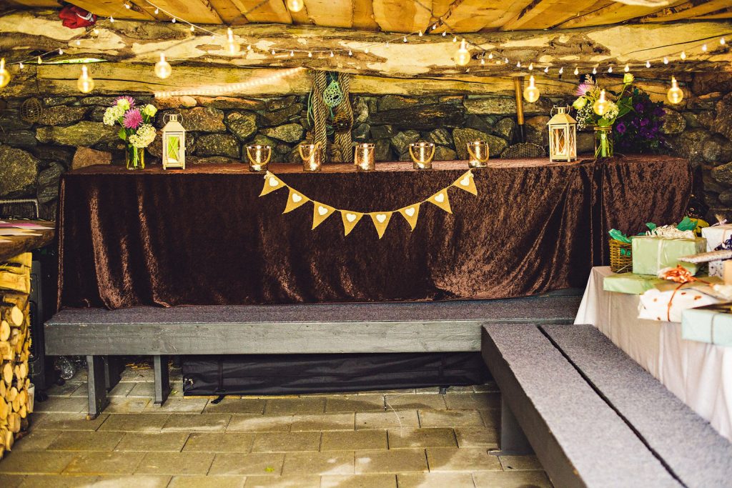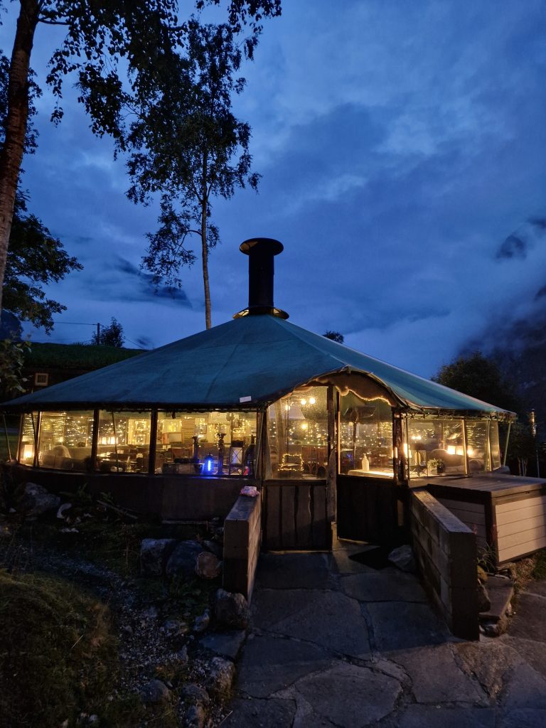 Naustet er den eldste bygningen på Yrineset. Når stearinlysa er tent er det riktig koseleg å sitte der å nyte livet.